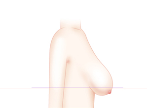유두가 가슴 밑 주름 위치에 있거나, 이보다 1cm 이내로 내려간 경우