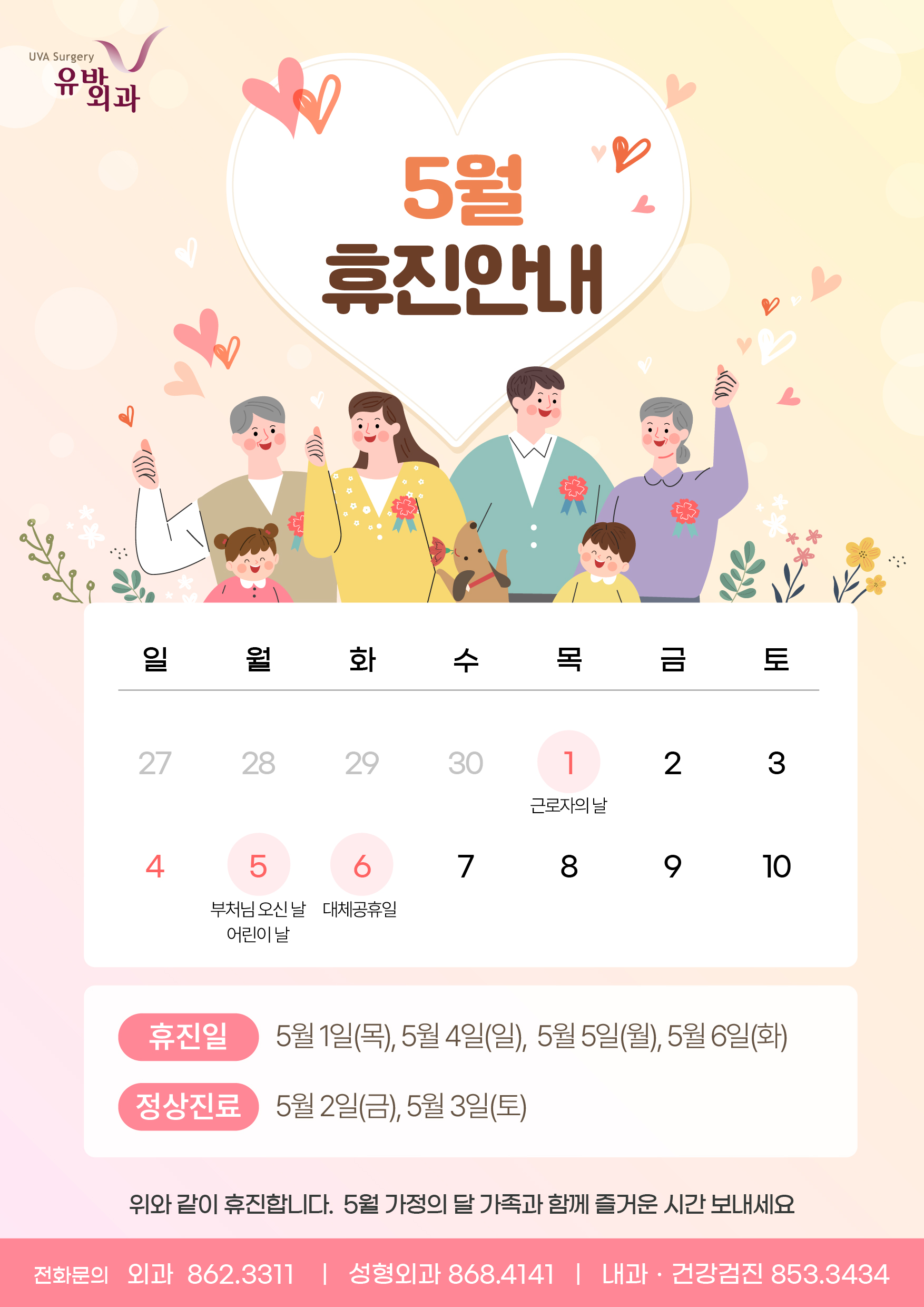 ✔ 5월 2일(금), 5월 3일(토) 정상진료
